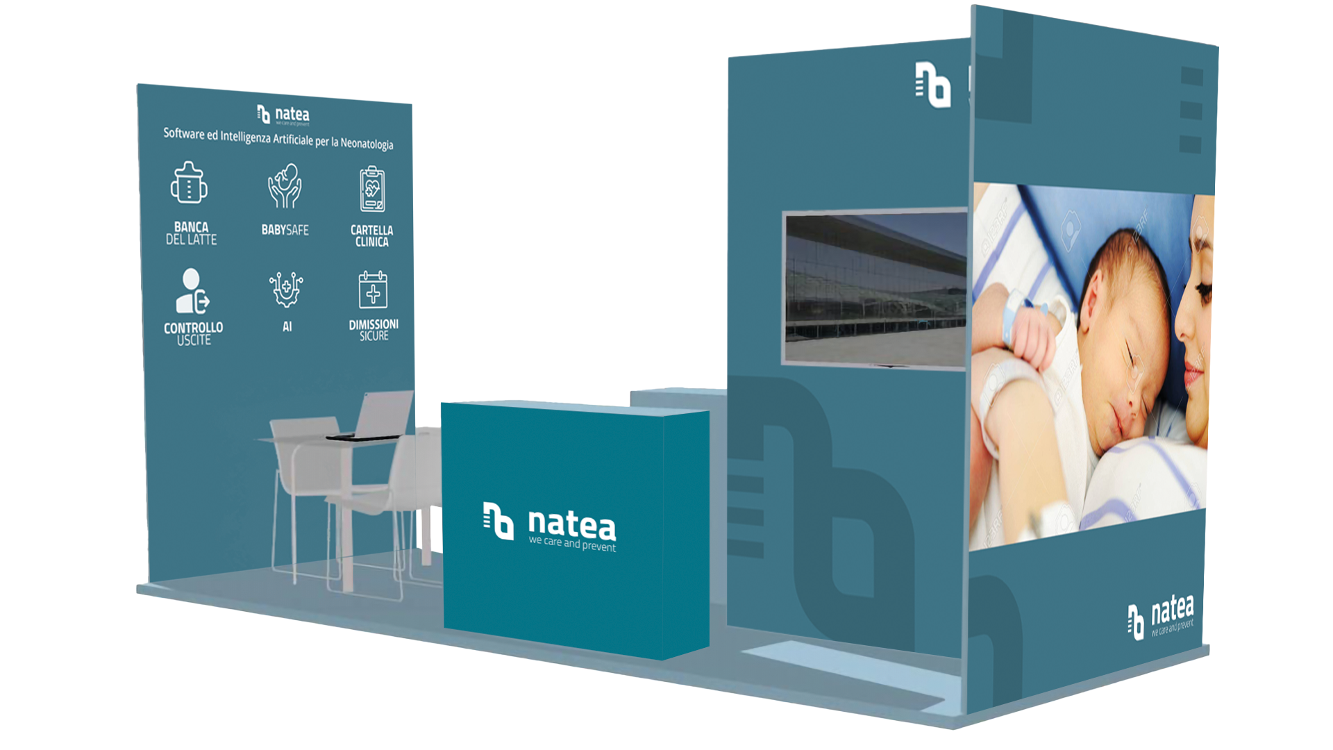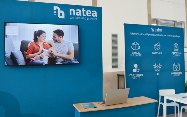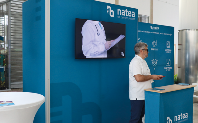 Natea è una start-up che innova i reparti di Neonatologia, Pediatria e Ostetricia con sistemi informativi basati su Machine Learning e Intelligenza Artificiale. Per il 24° Congresso Nazionale della Società Italiana di Neonatologia a Napoli, serviva uno stand capace di riflettere questa visione.